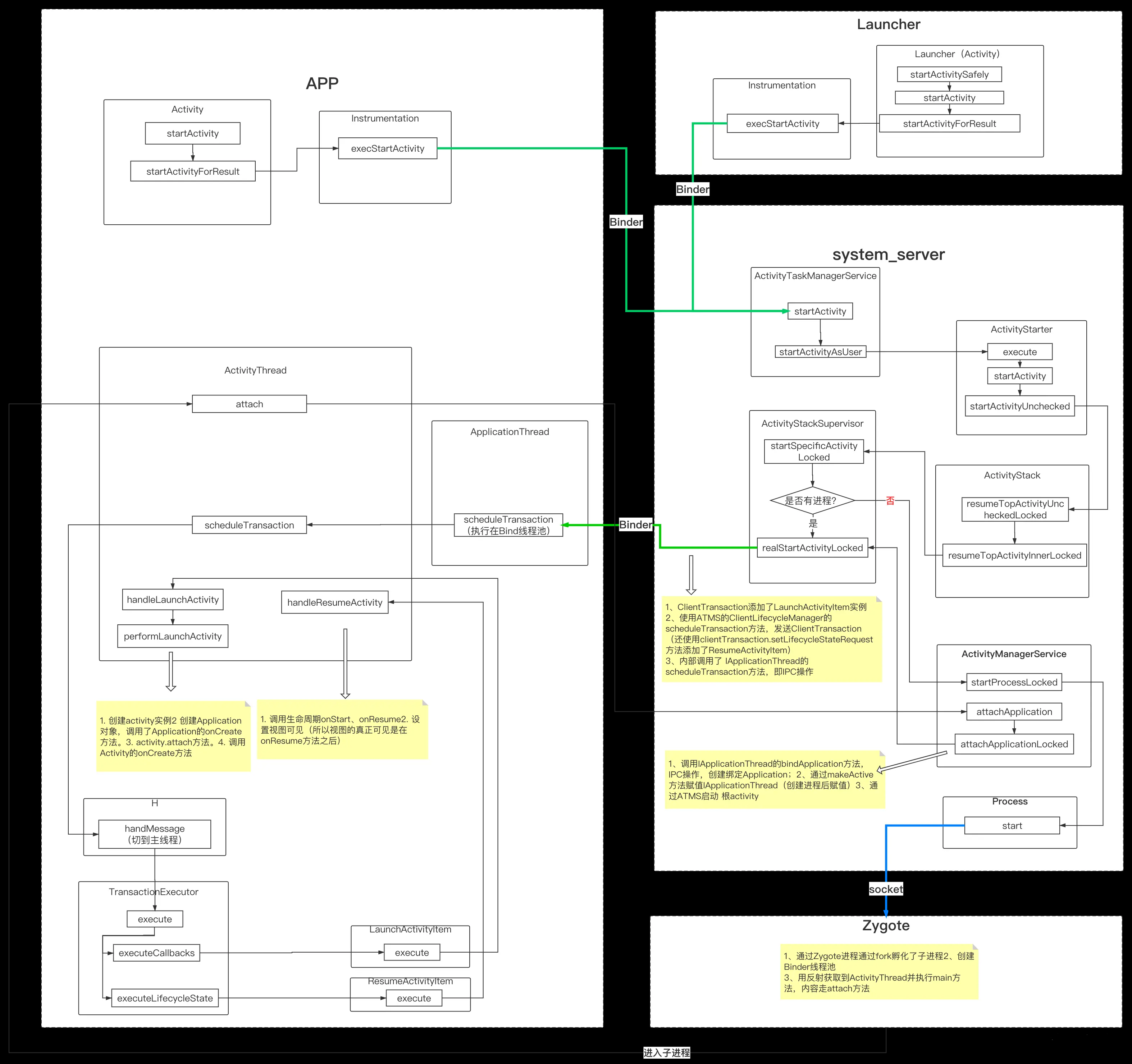 这些对应的都会走到handlexxxActivity方法,这里我们就不再一一分析了。至此根Activity的启动已经完成了,那么普通activity的启动流程呢?